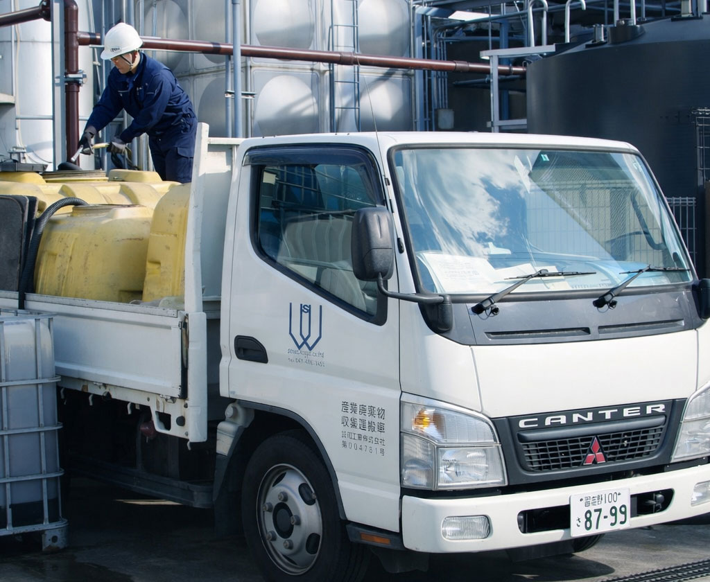 - 一台の車両で取り扱う全種類の産業廃棄物を一括回収します。小ロット・多種類排出にも問題なく対応可能です。